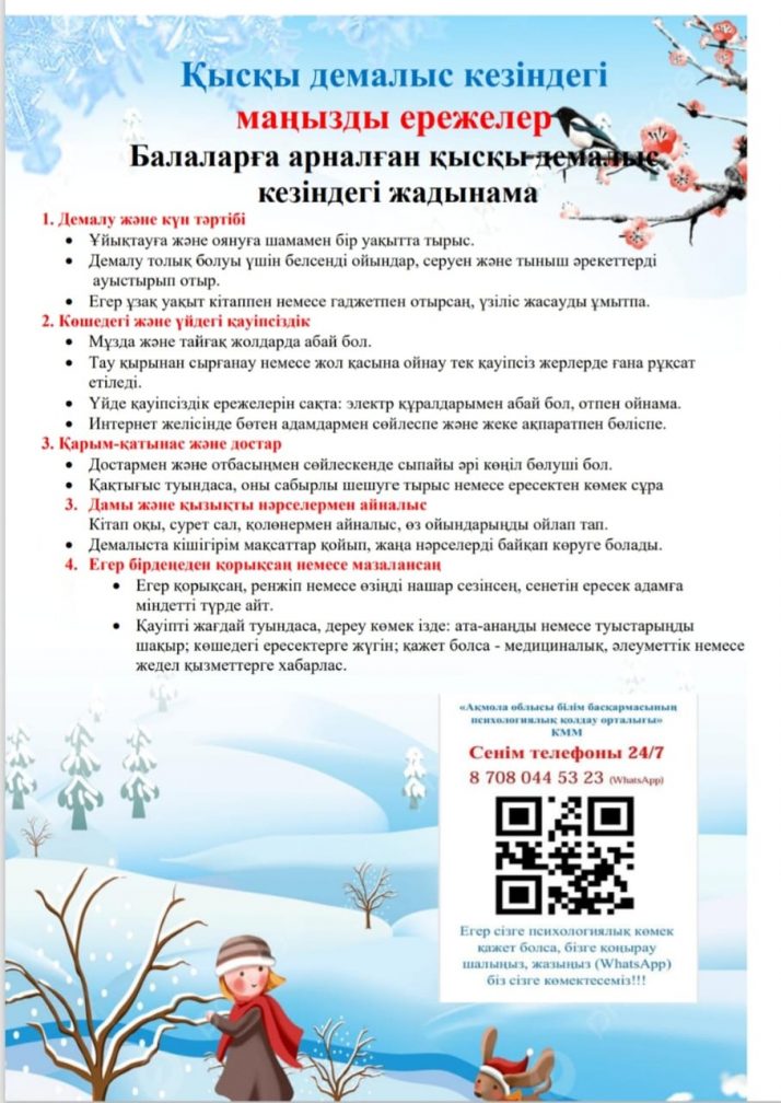 Қысқы демалыс уақытындағы қауіпсіздік